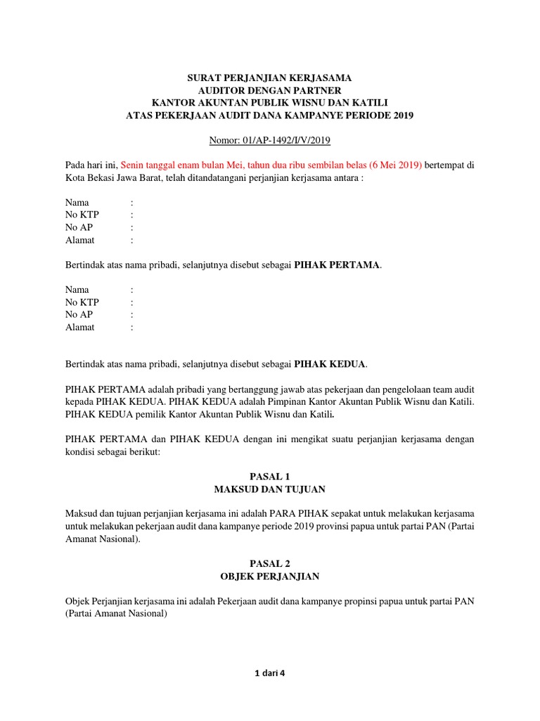 Contoh Surat Perjanjian Kerjasama Pdf